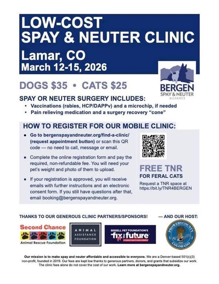 Scheduling Questions? Contact booking@bergenspayandneuter.org or text 719-657-7115